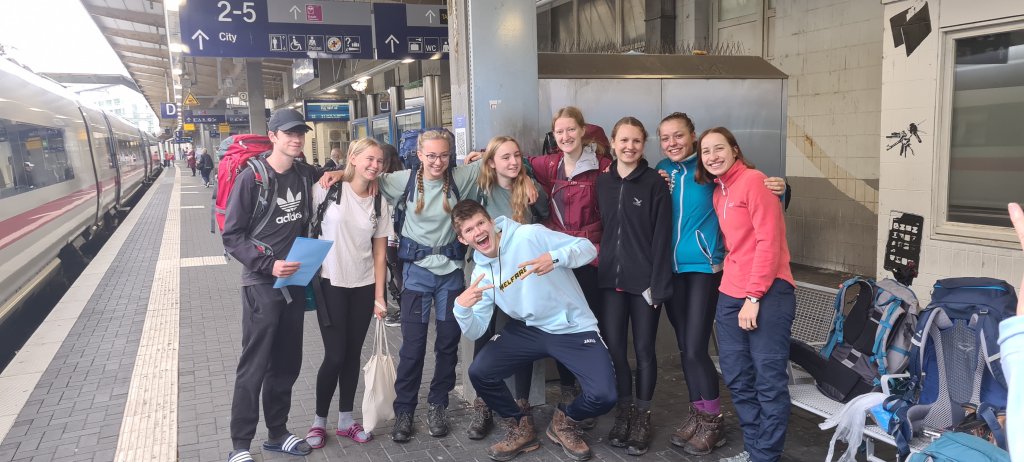 Wegen der schönen Zeit in den Bergen, kam uns schon während der Alpenüberquerung 2021 die Idee, eine solche Hüttentour zu wiederholen. Mit Hilfe des in der Alpen Ag erlangten Wissens fingen wir im Herbst letzten Jahres an, unsere Wanderung zu planen. Bald stand fest, dass es in die Schweizer Alpen gehen sollte und auch eine Gruppe von elf Leuten fand sich schnell. Sechs waren begeisterte ehemalige Alpenüberquerer, für die anderen sollte es die erste Erfahrung dieser Art werden. Nach einigem Überlegen beschlossen wir, es uns einfach zu machen und über das Internet die Hütten des Bernina Treks bei Sankt Moritz im Engadin zu buchen.