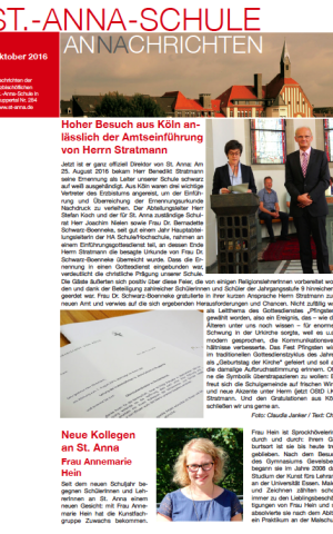 Zum Nachschlagen oder als Archiv - hier finden Sie alle Ausgaben der ANNAchrichten aus dem Schuljahr 2016. Viel Spaß beim Stöbern!