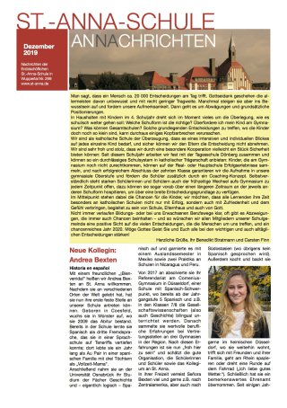 Zum Nachschlagen oder als Archiv - hier finden Sie alle Ausgaben der ANNAchrichten aus dem Schuljahr 2019. Viel Spaß beim Stöbern!