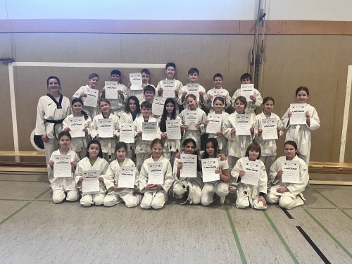 Taekwondo-AGErfolgreiche Taekwondo-Prüfung der 5. und 6. Klassen26 Schülerinnen und Schüler der 5. und 6. Klassen haben erfolgreich an der Taekwondo-Prüfung im Rahmen der Taekwondo-AG teilgenommen. In den vergangenen Wochen lernten sie mit viel Engagement grundlegende Techniken, Disziplin sowie wichtige Werte wie Respekt und Durchhaltevermögen. Als Anerkennung für ihre Leistungen erhielten alle Teilnehmenden eine Urkunde und dürfen ab sofort den weiß-gelben Gürtel zur Sportkleidung tragen. Wir gratulieren herzlich zu diesem Erfolg und freuen uns über die tollen Fortschritte, die in der AG erzielt wurden! |