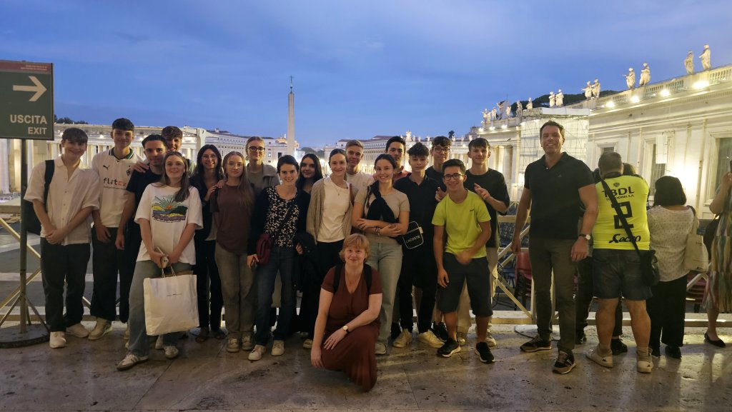 Am Mittwoch hatten wir vormittags zunächst Freizeit; einige Kulturhungrige schlossen sich Frau Schubert und Herrn Heß zu einer kleinen Kirchentour zu Santa Croce in Gerusalemme, San Giovanni in Laterano und San Clemente an. Nachmittags sind wir dann in das Vatikanische Museum gegangen. Dort erwartete uns eine mehrstündige und sehr umfangreiche Führung durch das Museum, die mit der Besichtigung der Sixtinischen Kapelle endete. Anschließend besuchten wir den Petersdom, dessen Architektur uns ziemlich ins Staunen versetzte und der in der Abenddämmerung Roms ein traumhaftes Bild abgab. Den anstrengenden Tag ließen wir am Abend mit einem Essen in einem kleinen italienischen Restaurant ausklingen.