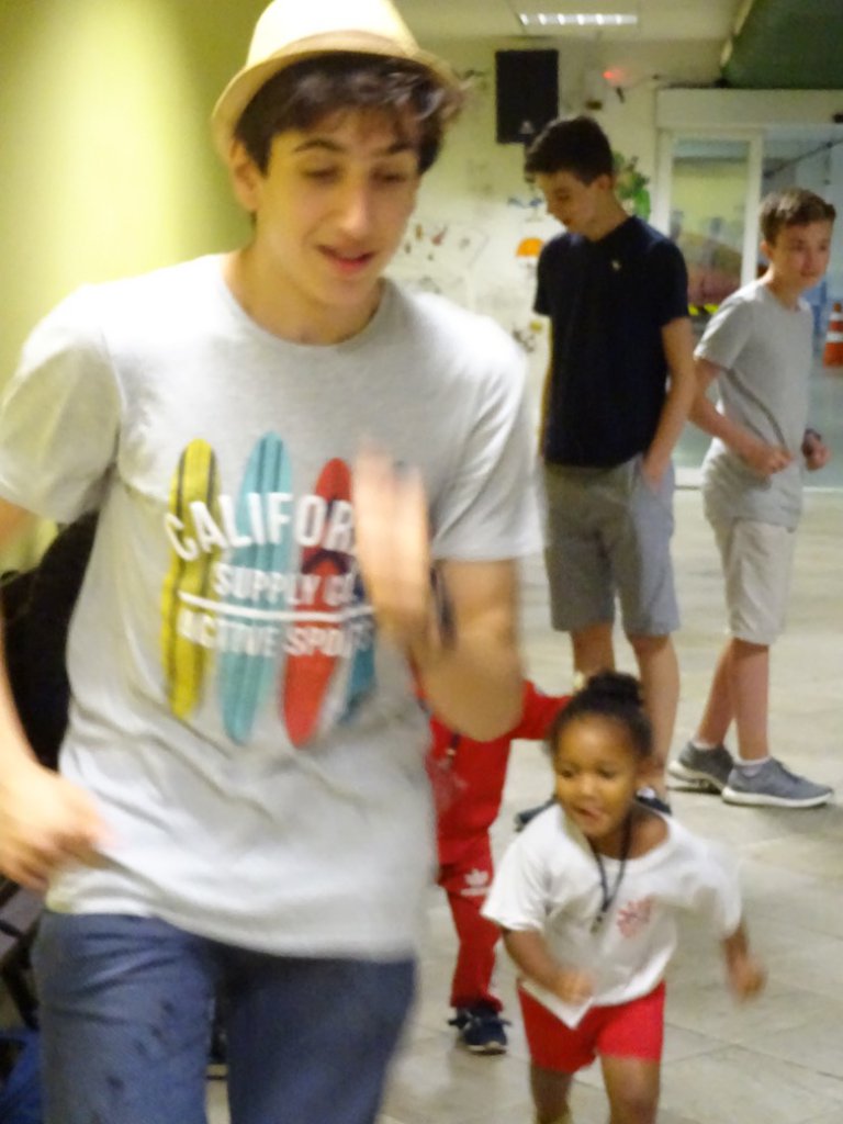 St.-Anna-Schüler/innen reden, spielen und tanzen mit den Mädchen und Jungen aus dem Kinderhort Maria e Marta