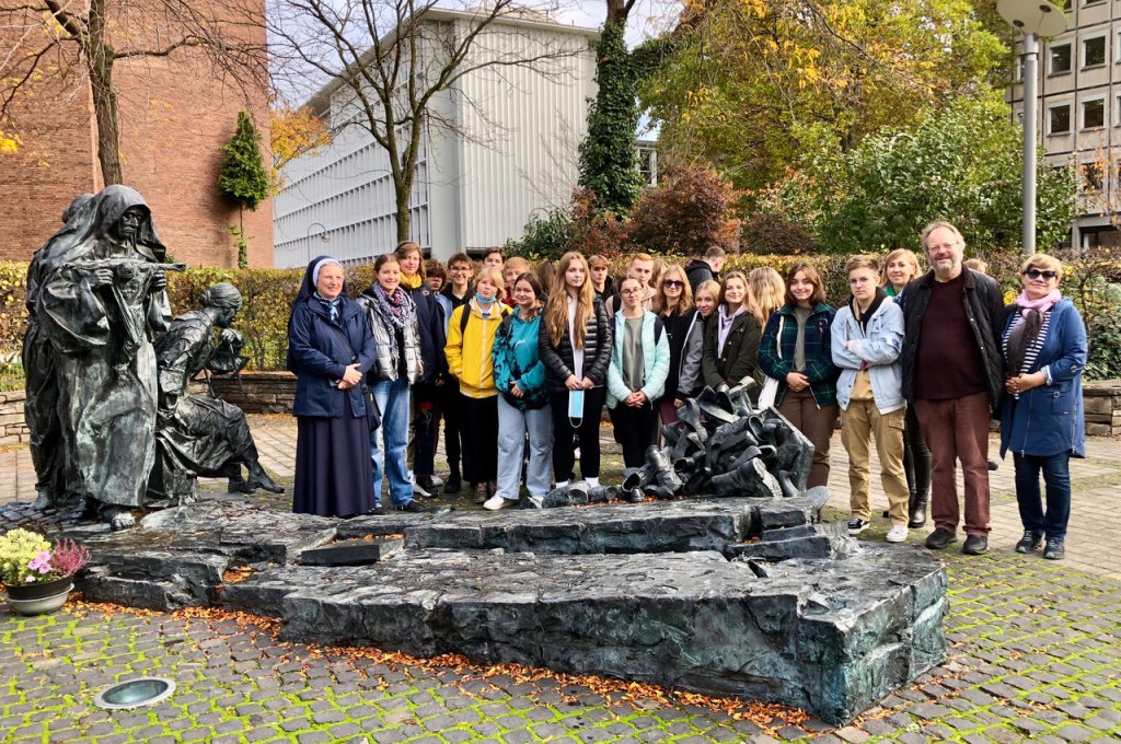 Der Dienstag stand im Zeichen der „Hauptstadt“ unseres Erzbistums: Köln (Wetter o.k.). Erstes Highlight natürlich der Kölner Dom, wobei Wissenswertes zu Fenstern, Gräbern, Bildern und Heiligenfiguren zu erfahren war. Nach zwei weiteren Kirchen besichtigten wir das Denkmal für die jüdisch-christliche Philosophin Edith Stein, einer der Lieblingsorte unserer kompetenten Begleitung Sr. Celina. Anschließend konnte – weitere Besonderheit - das Schokoladenmuseum bestaunt werden, ein paar Kostproben inklusive. Die verbleibende Zeit nutzen die SchülerInnen in Kleingruppen für einen Stadtbummel.