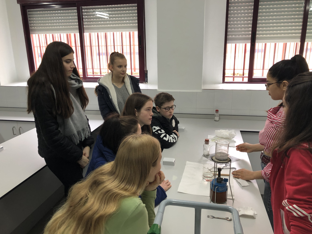 Nach dem Tanzen haben wir uns in zwei Gruppen geteilt. Die eine Gruppe nahm zuerst an einer extra für uns organisierten Kunststunde teil, in der wir kleine Andenken basteln durften, der anderen Gruppe wurden Experimente im Chemieraum vorgeführt.