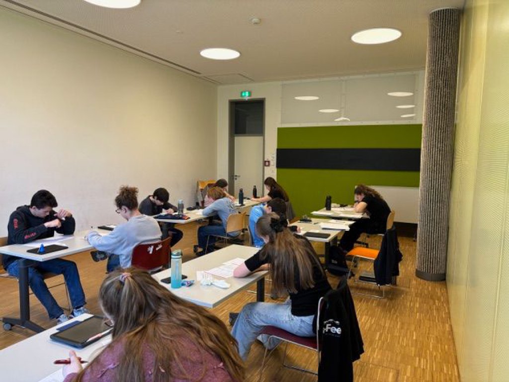 Während der Tage wurde inhaltlich mit den Teamern zum Thema Beziehung, falsche Freunde, Stress und Entspannung gearbeitet. Auch für Mathe-Fans fand sich in der Mittagspause noch Gelegenheit am Känguru-Wettbewerb teilzunehmen (s.Bild). Allerdings haben die Handys der Schülerinnen und Schüler abends sicherlich mehr Schlaf erhalten als diese (s.Bild). Morgen- und Abendimpulse rundeten den Tag in der frisch renovierten Kapelle ab (s.Bild). Abschließend waren wir am Abreisetag von Abbé Pauljo zu einer Messe eingeladen.