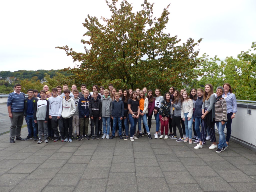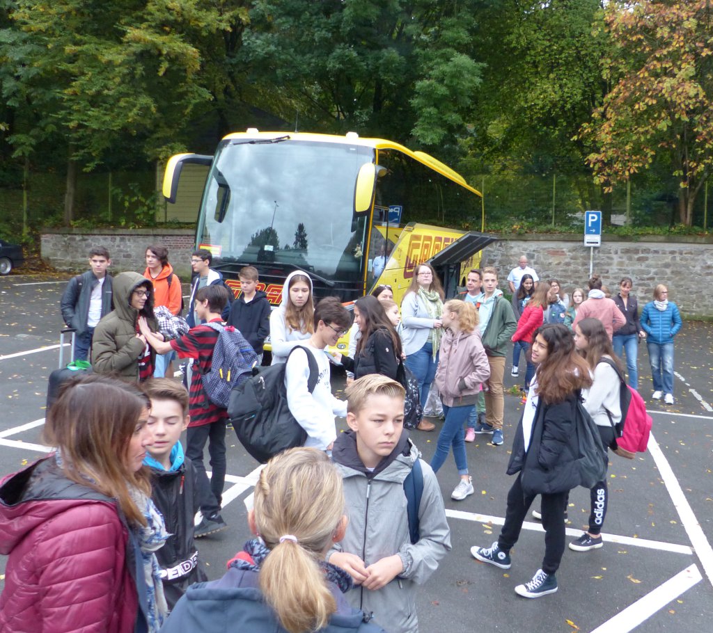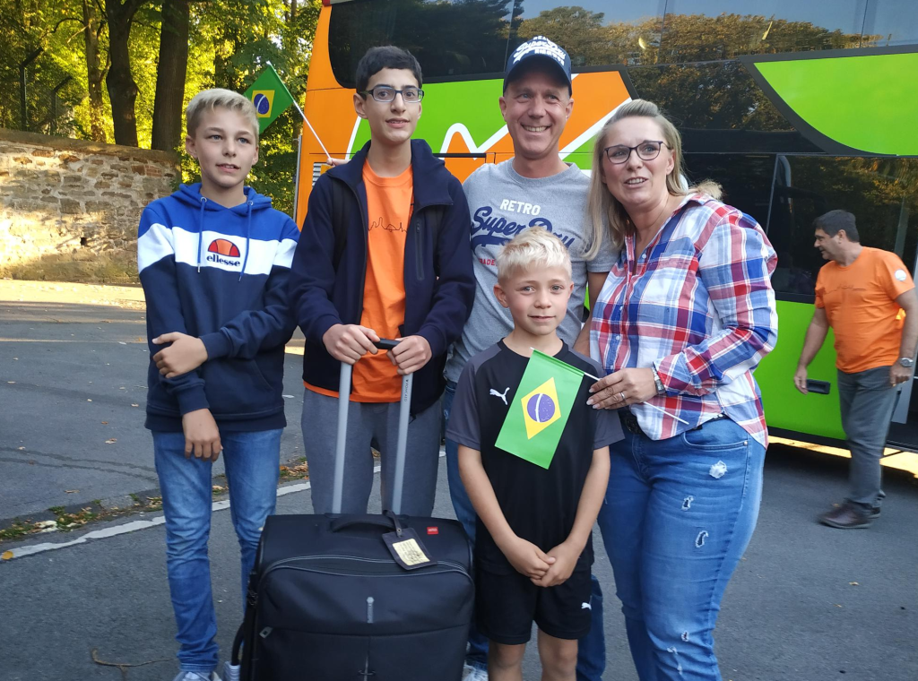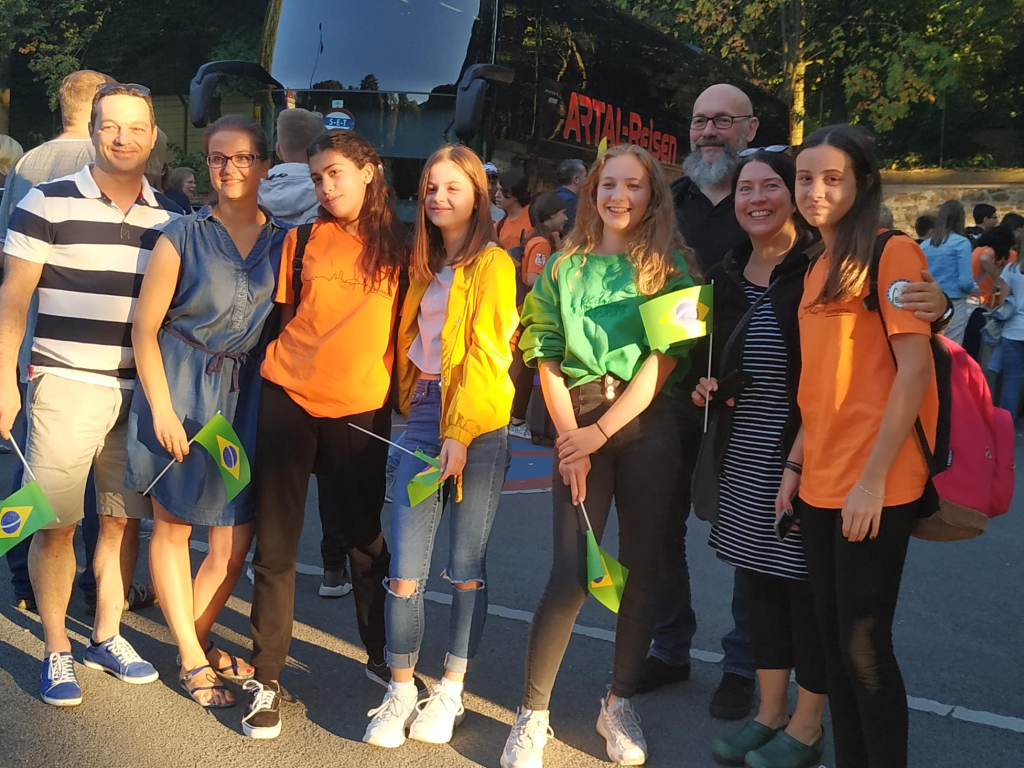 Samstagabend 18:30 Uhr. Endlich ist es soweit. Der große Reisebus mit den 19 Schülerinnen und Schülern und den beiden sie begleitenden Kolleg/innen unserer Partnerschule, der Corcovado Schule, in Rio de Janeiro, biegt ein auf den Parkplatz am Stadion Zoo und ein großes Hallo und Fähnchenschwinken begrüßt die Gäste nach ihrer langen Anreise von Rio über Frankfurt in Wuppertal. Hier werden die Schülerinnen und Schüler aus dem fernen Brasilien die nächste Woche in den Gastfamlien und auch im Unterricht an unserer Schule verbringen.