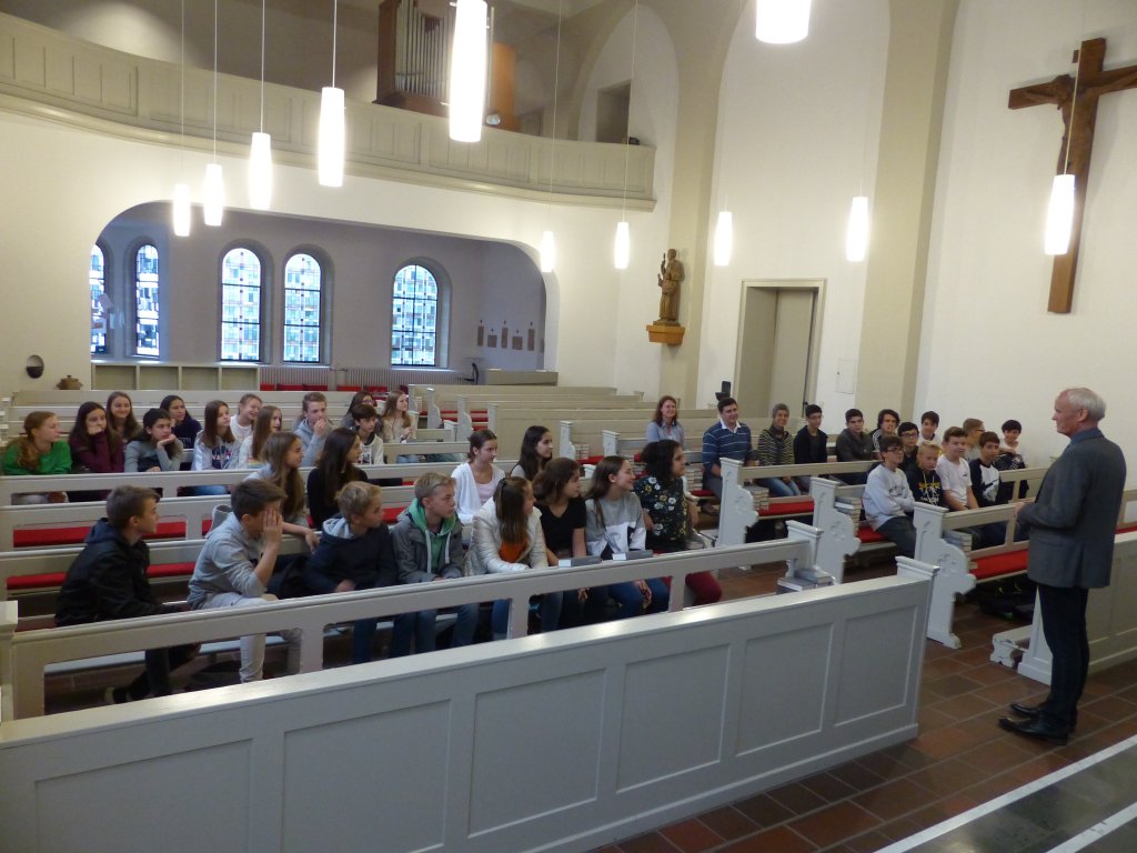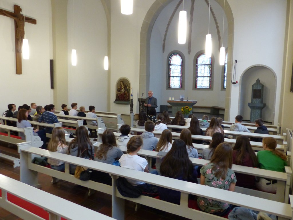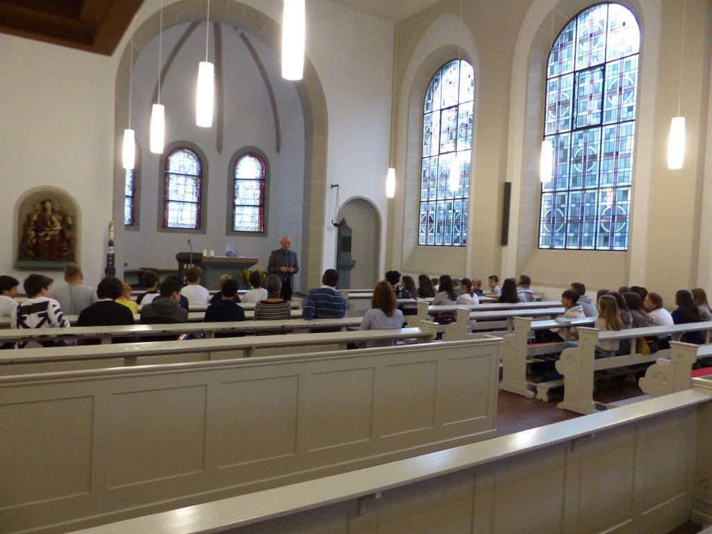Begrüßung unserer Schüleraustausch-Gäste in der Schulkapelle durch unseren Schulleiter, Herrn Benedikt Stratmann.