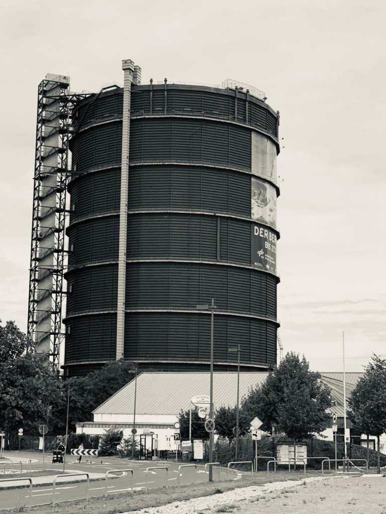Anschließend ist Kultur angesagt. Und ein guter Ausblick. Im 100 Meter hohen, gewaltigen Gasometer in direkter Nachbarschaft zum Kletterwald dürfen ein umgedrehter Berg bestaunt und viele Natur-Fotografien angeschaut werden. Ein Aufzug führt aufs Dach des Gasometers und von dort aus ist der Blick über das Ruhrgebiet überwältigend (siehe Foto von der Aussichtsplattform).